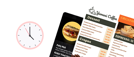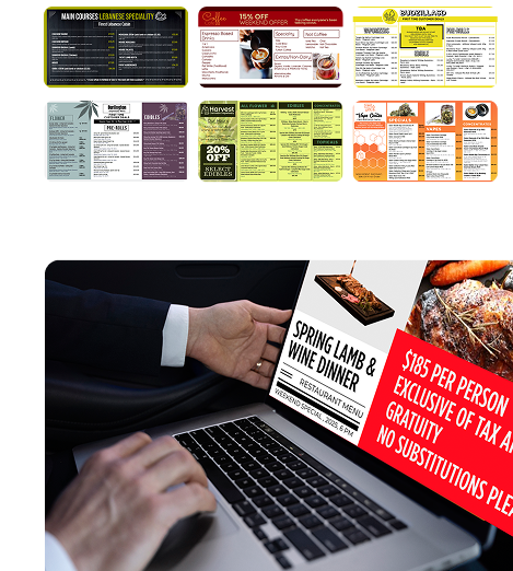 MyMenuDesign's digital content design tool for Restaurants, Bars & Pubs, QSRs, Hotels, Garages, Retail stores, Beauty salons and other business. Design your menu boards, flyers, posters, social media posts and many more.
